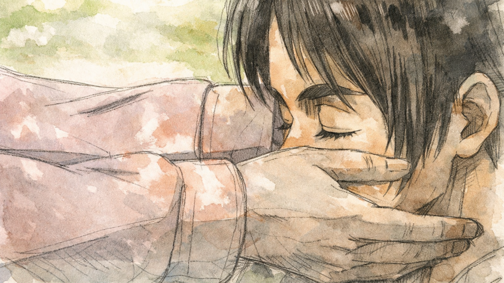 エレンが木の下で見たのは「いま起きている出来事」ではなく、あとから意味が立ち上がる記憶の断片だからです。普通の夢なら目覚めれば薄れていきますが、1話の夢は涙や感覚が残り、ミカサの呼びかけと結びつくことで違和感を強調しています。